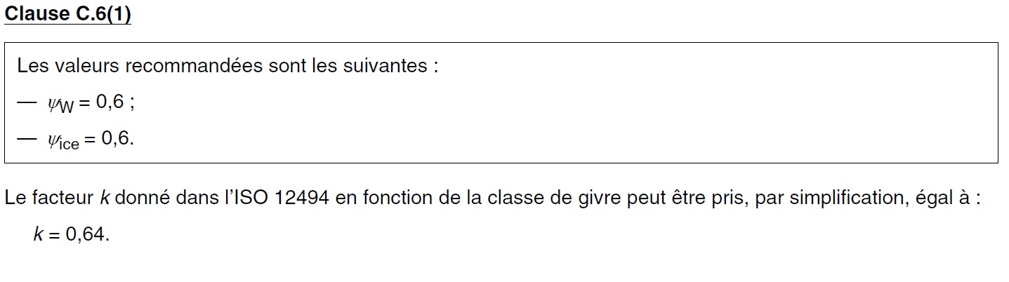 Les surcharges de givre et action du vent font partie du même cas de chargement car il n'est pas physiquement possible d'obtenir une action du vent augmentée par les manchons sans présence du givre.